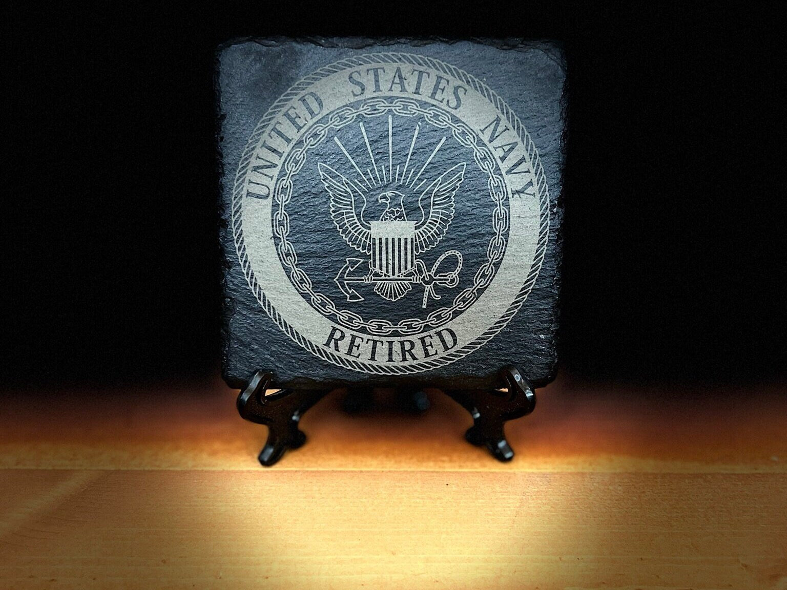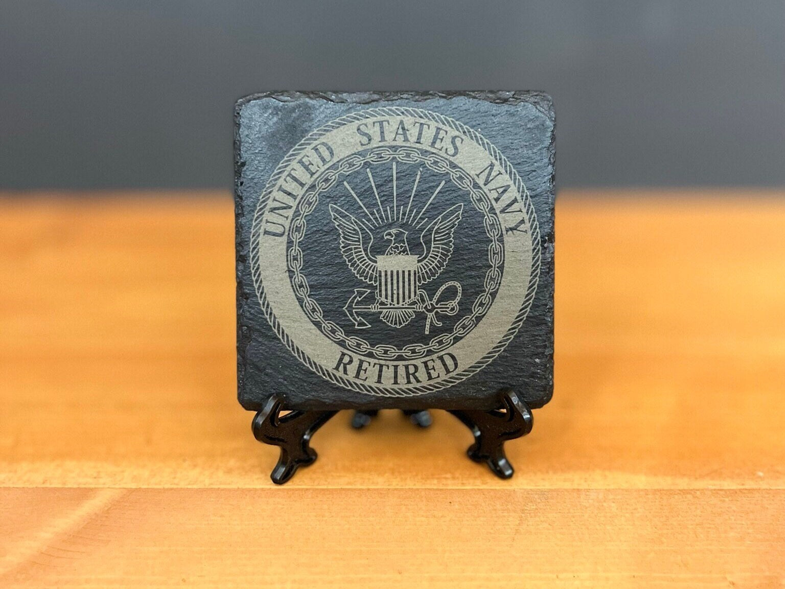 Laser Engraved Slate Coaster with the United States Navy Retired Seal